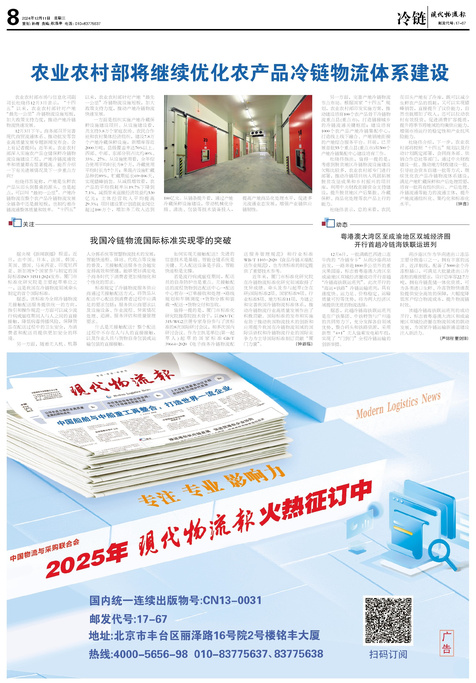 ■ 农业农村部将继续优化农产品冷链物流体系建设