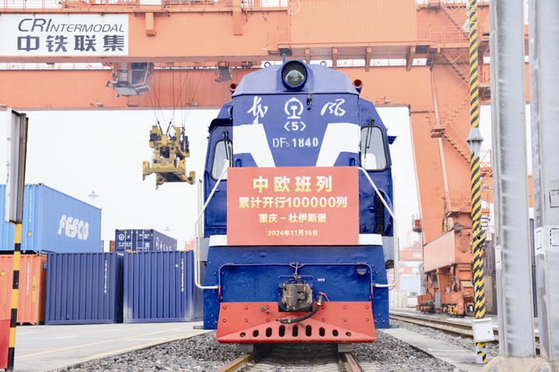 11月15日,随着X8083次中欧班列缓缓驶出重庆团结村中心站,驶向德国杜伊斯堡,中欧班列第10万列开行,跑出全新纪录。