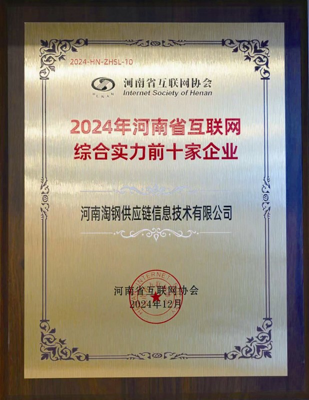 会上,2024年河南省互联网企业综合实力研究结果“出炉”。河南淘钢供应链信息技术有限公司(以下简称“淘钢网”)荣获2024年度河南省互联网综合实力企业十强称号。