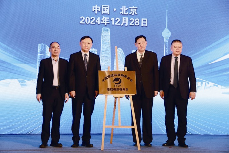 会上,中国物流与采购联合会名誉会长何黎明,中国物流与采购联合会党委副书记余平,中国物流与采购联合会副会长胡大剑,中国物流与采购联合会副会长、中国物流学会副会长杨国栋为港航供应链分会揭牌。