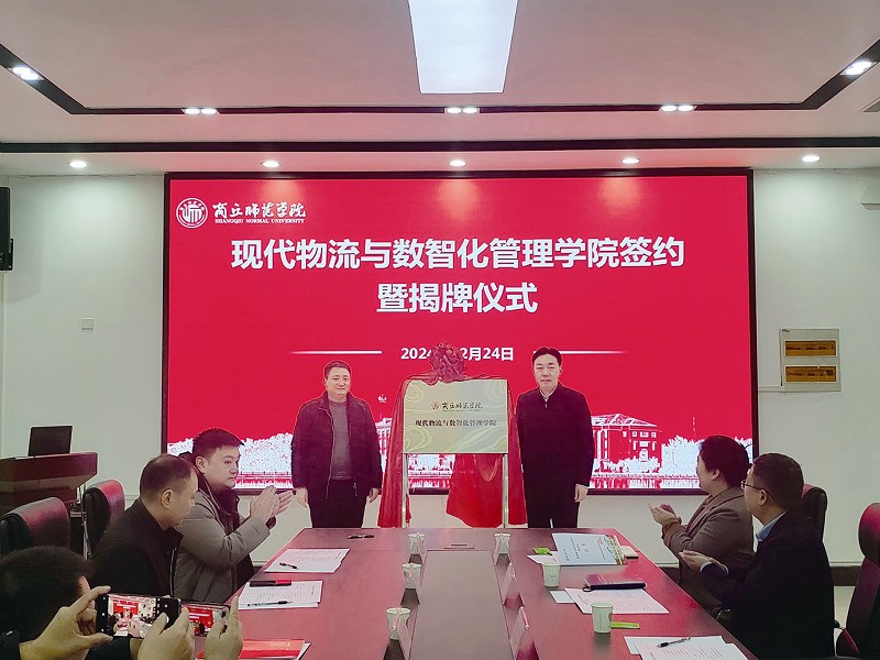 本报讯 (记者代振锋通迅员张保胜 张良远)2024年12月24日,商丘师范学院现代物流与数智化管理学院在商丘师范学院梁园校区举行揭牌仪式。学院党委书记张志坚、副校长翟滨以及商丘传化公路港物流有限公司等共建企业代表参加揭牌仪式。