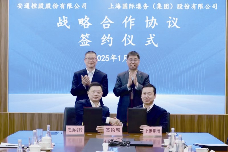 本报讯1月2日,安通控股股份有限公司(以下简称:安通控股)与上海国际港务(集团)股份有限公司(以下简称:上港集团)在上海举行战略合作协议签约仪式,标志着安通控股与上港集团的合作迈入了一个新的阶段。