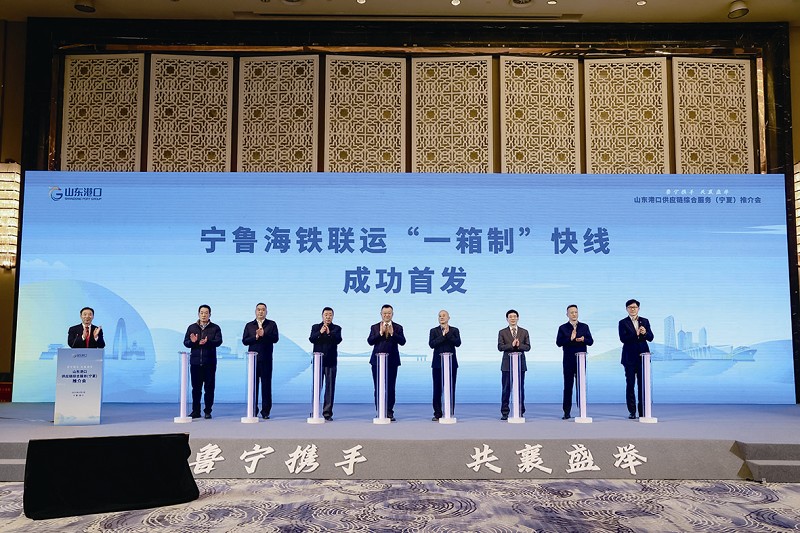 宁夏回族自治区商务厅党组成员、副厅长朱东,宁夏回族自治区交通运输厅二级巡视员陈钧,银川海关党委委员、副关长龙军,山东港口党委副书记、董事、总经理李奉利出席活动。李奉利介绍山东港口发展情况并推介供应链综合服务体系。山东港口党委常委、常务副总经理马德亮主持活动。与会领导共同见证宁鲁海铁联运“一箱制”快线启动。