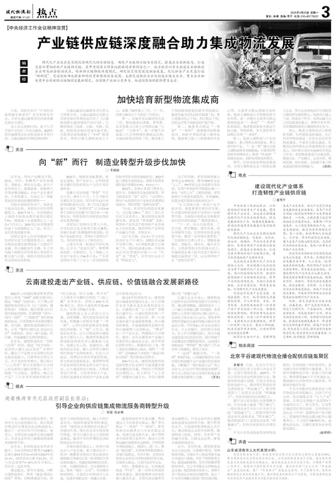 山东省济南市人大代表贺小轩: 我国是制造业大国,制造业物流总额占社会物流总额的比重接近90%。要实现...
