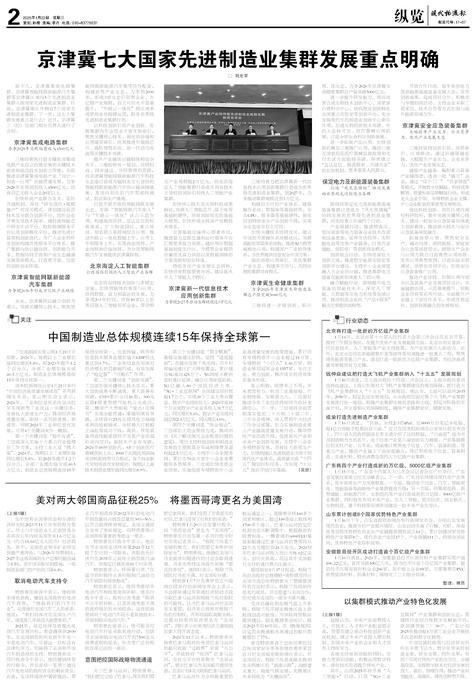 □ 刘光宇 前不久,京津冀集成电路集群、京津冀智能网联新能源汽车集群等京津冀区域内5个先进制造业集群...