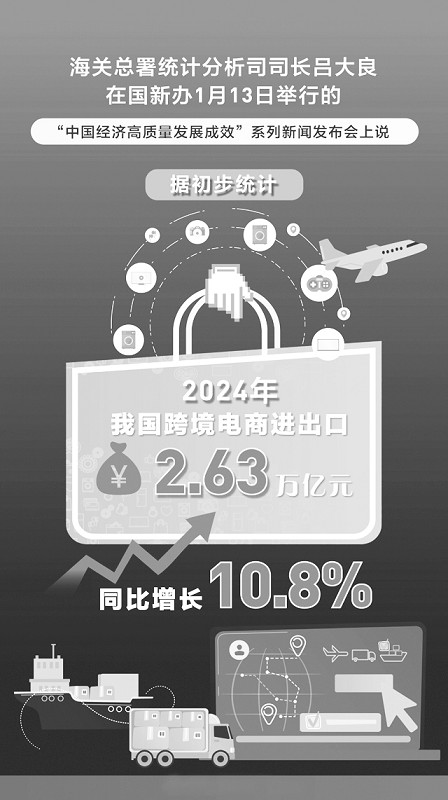近年来,我国跨境电商规模从小到大,质量做强做优,已成为我国对外贸易和全球经贸领域的新亮点。据初步统计,2024年我国跨境电商进出口2.63万亿元,增长10.8%。过去5年,我国跨境电商贸易规模增长超过10倍。截至目前,我国跨境电商企业数量已超12万家,跨境电商企业累计在海外注册商标超3万个。跨境电商在“卖全球”方面潜力进一步释放,在“买全球”方面的优势也在持续发挥。