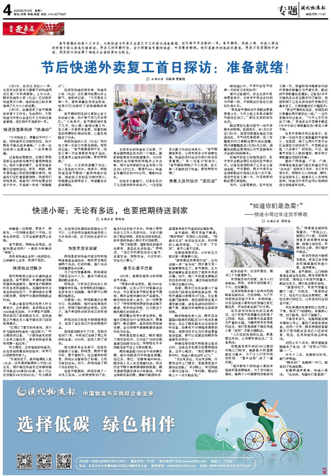 □ 本报记者 马敬泽贾奥胜 2月5日,农历正月初八一早,北京丰台区铭丰大厦楼下的快递网点已是一片热闹景...