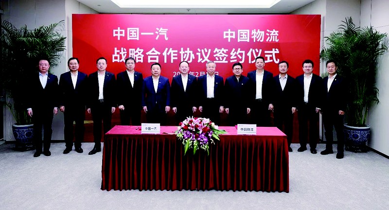 本报讯 2月13日,中国物流与中国一汽在京签署战略合作协议。中国物流集团党委书记、董事长刘敬桢,党委副书记、总经理廖家生,中国一汽党委书记、董事长邱现东共同见证签约并就推动战略合作落实落地进行深入交流。