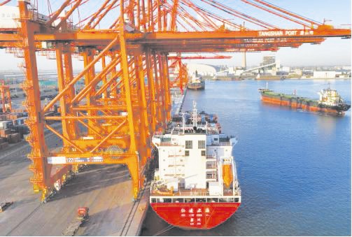 天津港负责人举例称,包头至南非的工程车部件通过“无水港集货+空重联运”模式实现全程无忧运输。技术赋能下,天津港的枢纽能级持续跃升。联合中远海运、马士基等11家船公司定制的联运产品,以及铁路集装箱中心站二线束建设,将新增年装卸能力40万标箱。