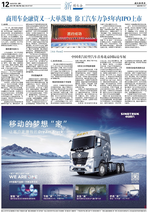 ■ 商用车企融资又一大单落地 徐工汽车力争5年内IPO上市