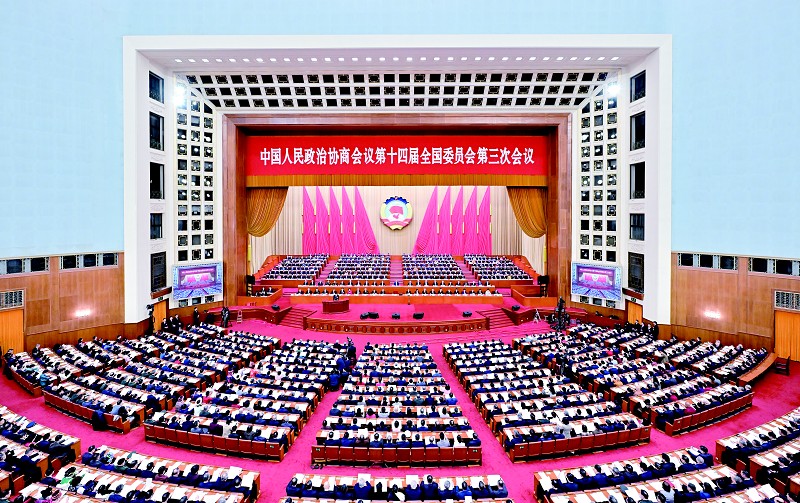 大会首先审议通过了政协第十四届全国委员会第三次会议议程。
