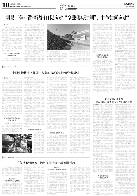 □ 渠沛然 日前,欧盟委员会发布公告称,对原产于中国的生物柴油作出反倾销肯定性终裁,决定对涉案产品征...