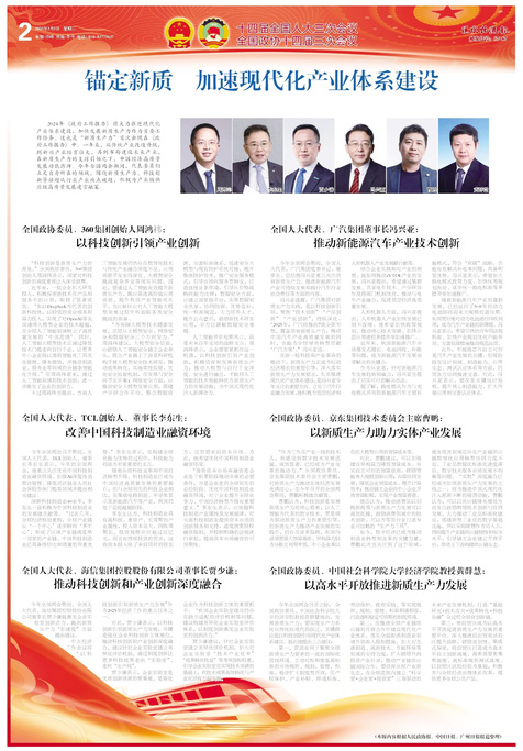 “科技创新是新质生产力的源泉。”全国政协委员、360集团创始人周鸿祎表示,国家对科技创新的高度重视让人深...