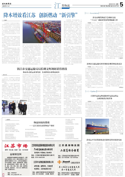 □王成祥 今年政府工作报告再次提出,实施降低全社会物流成本专项行动。全国两会期间,江苏代表团举行开...