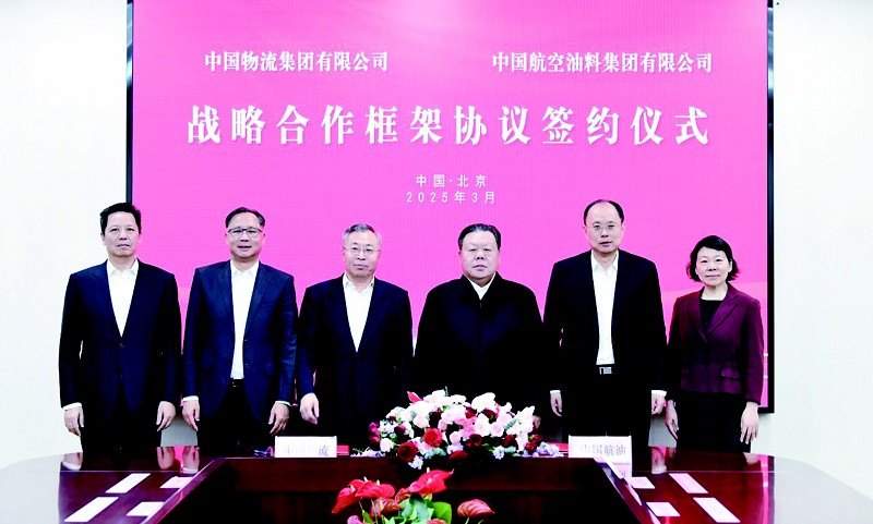 本报讯 3月12日,中国物流与中国航油签署战略合作协议。中国物流党委书记、董事长刘敬桢,中国航油党委书记、董事长申兆军见证签约并就推动战略合作落实落地进行深入交流。