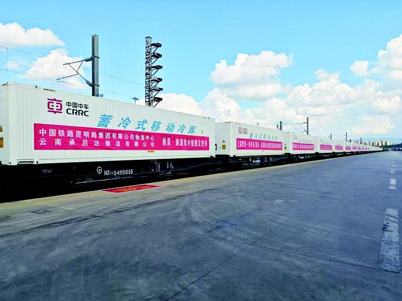 我国作为农业大国和人口大国,农产品在经济社会发展中占据举足轻重地位,冷链物流作为衔接田间地头与百姓餐桌的桥梁,承担着维护和保障民生福祉的重要任务。受冷链技术发展、行业规范等影响,果蔬在运输过程中造成腐损的现象还时有发生,行业有待进一步发展。“针对冷库分布不均匀这一问题,中车石家庄公司通过蓄冷技术与小型集装箱体的结合,开发了适用于田间地头及时保鲜的移动冷库,充分发挥其灵活便捷的优势,配合‘一对多’的集中供冷装备,可有效解决农产品采后冷藏不足、品质降低、增加后续流通腐损等痛点,满足新鲜货品采收后冷藏储存、及时保鲜需求,能够很好地起到削峰填谷的作用,形成冷库全国性的动态平衡,减少农产品‘最前一公里’‘最后一公里’损失。”张建武介绍说。