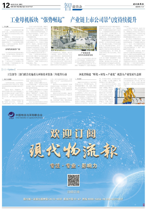 □ 朱江孙蓟潍 工业和信息化部、生态环境部、市场监管总局近日联合印发《促进环保装备制造业高质量发展的...