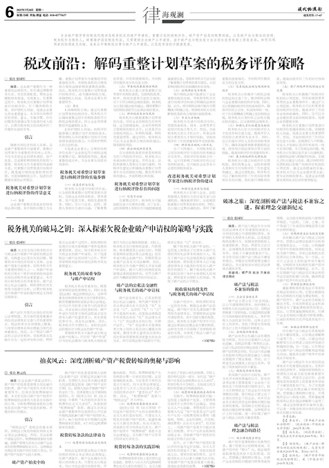 □ 张良张同军 摘要:破产法与税法作为市场经济法律体系中的重要组成部分,分别承担着公平清理债权债务、...