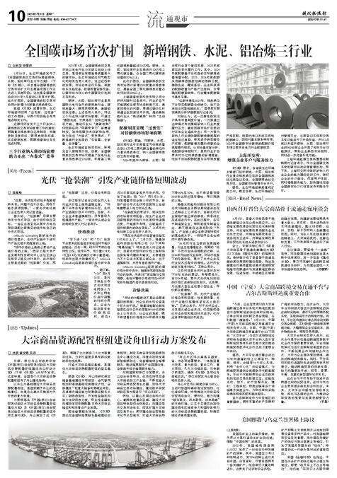 □ 白丽斐宋薇萍 3月26日,生态环境部发布了《全国碳排放权交易市场覆盖钢铁、水泥、铝冶炼行业工作方案...