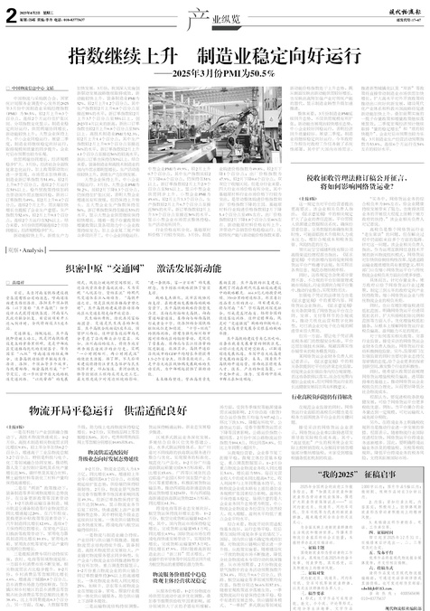 □ 中国物流信息中心文韬 中国物流与采购联合会、国家统计局服务业调查中心发布的2025年3月份中国制造业...