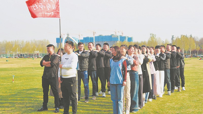正值春和日丽、草长莺飞的时节,在郑州市经开区的蝶湖公园内,来自郑州瑞隆的年轻员工们披着春光,有序地开展了多项游戏、拓展训练等团建项目。