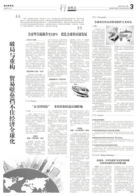 近期,美国政府以所谓“对等关税”为名,对中国及全球主要贸易伙伴滥施关税,国际社会普遍认为,这给全球贸易...