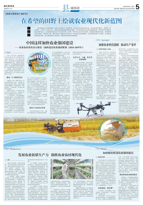 编者按 《加快建设农业强国规划(2024-2035年)》日前印发,农业现代化迎来系统性、阶段性的新布局。《...