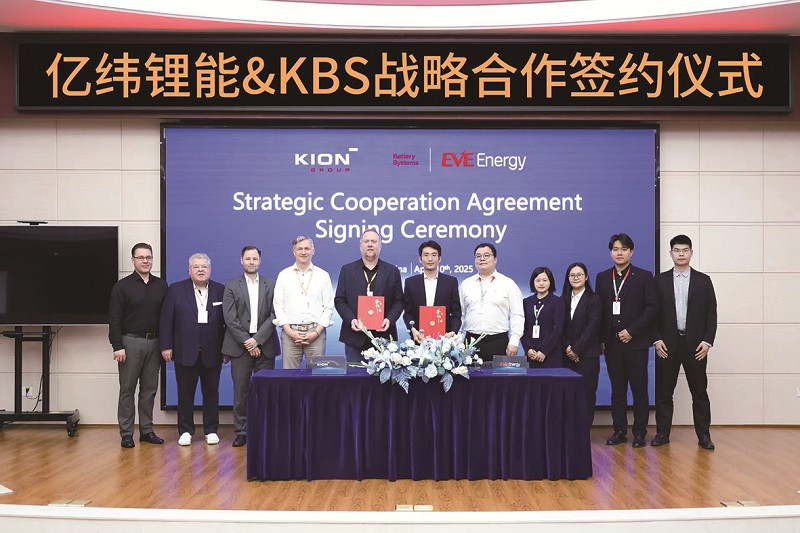 本报讯 4月10日,惠州亿纬锂能股份有限公司(以下简称“亿纬锂能”)与KION Battery Systems GmbH(以下简称“KBS”)正式签署战略合作协议。双方将聚焦21700圆柱电池在欧洲物流车辆领域的规模化应用,加速推进欧洲工业运输场景的零碳转型,共同构建可持续能源价值链。