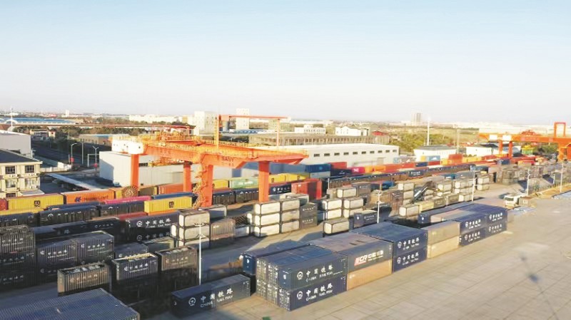 海安物流园与周边海港合作,依托铁海快线、江海河联运等多条“超级传送带”,把货物从海安送到世界各地。