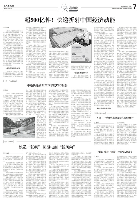 □吴欣 4月17日,中通快递发布2024年度社会责任报告,这也是中通快递发布的第八份社会责任报告。 报告...