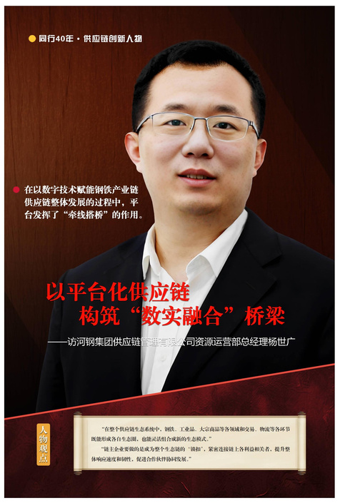 “在整个供应链生态系统中,钢铁、工业品、大宗商品等各领域和交易、物流等各环节既能形成各自生态圈,也能灵活组合成新的生态模式。”“链主企业要做的是成为整个生态链的‘锁扣’,紧密连接链上各利益相关者,提升整体响应速度和韧性,促进合作伙伴协同发展。”