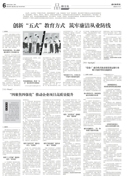 2024年,企业紧扣“学条例守纪律,共铸清廉股份”主题,积极推进“五式”廉洁教育,强化党员干部廉洁从业意识和...