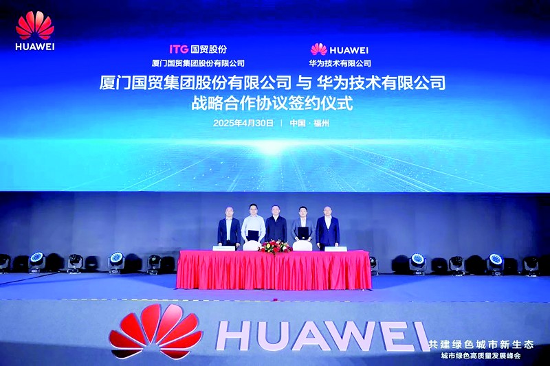 本报讯 4月30日,厦门国贸集团股份有限公司(以下简称“国贸股份”)与华为技术有限公司(以下简称“华为”)在第八届数字中国建设峰会上签署战略合作协议。双方同意建立战略合作伙伴关系,未来将在光储解决方案、充电业务及绿色数据中心建设领域展开合作。