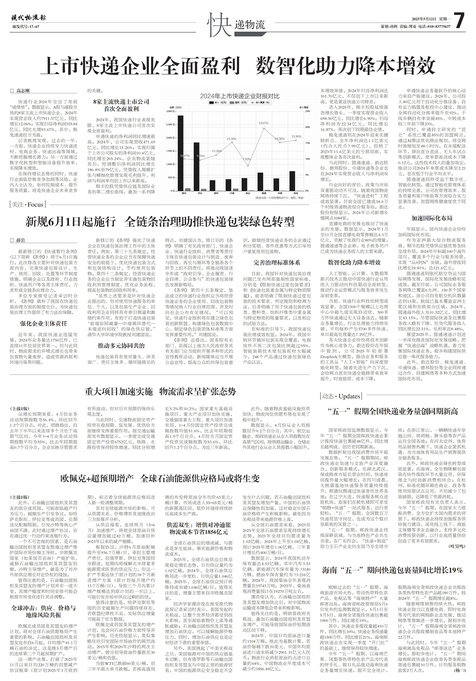 ■ 上市快递企业全面盈利 数智化助力降本增效