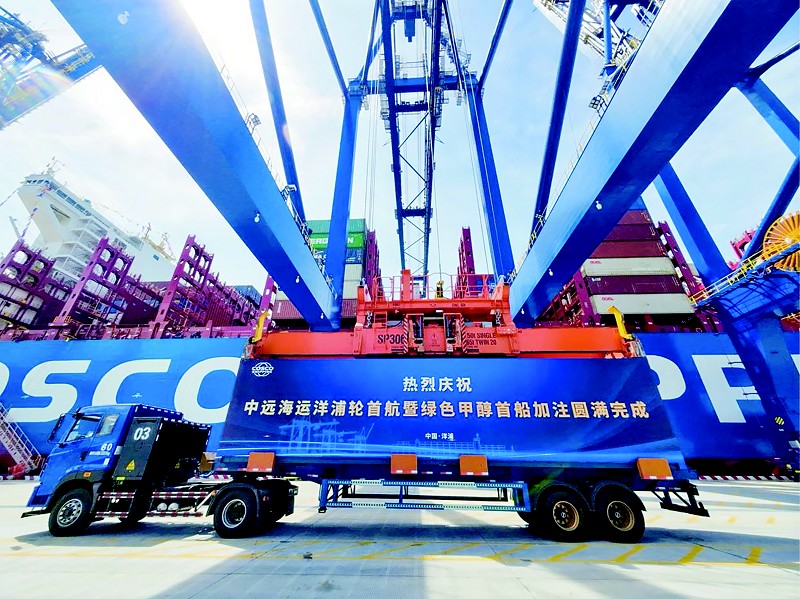 本报讯 7月2日,我国首艘甲醇双燃料动力集装箱船“中远海运洋浦”轮首航海南省洋浦港,并在洋浦国际集装箱码头完成首次200吨国产绿色甲醇加注。