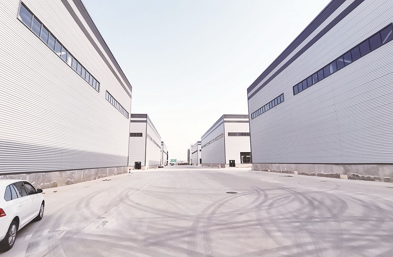程丹介绍,钢材市场占地面积为200多亩,一期建成12多万平方米,每个单体仓库层高均为18米,长70米,宽25米,仓库顶部均做了隔热并铺设了光伏板,“市场主体工程建设验收完毕,目前已经有部分客户抢先入驻,实现了正常的经营”。