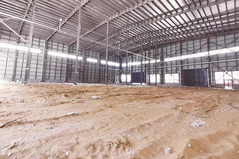 站在市场宽阔的南北中心道路上可以看到,两侧整齐排列着共6栋大型仓库。各个仓库内,主体结构施工已经全部完成,消防设施完备,黄土的地面非常平整,只待入驻商户根据需要硬化即可。“仓库上方温度还不到30度!”在一个仓库内,一位知名的加工企业王姓老板手持激光测温枪,只见他对着仓库顶部的实测数据显示为28度左右。