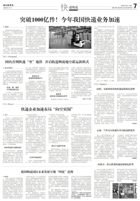 □ 张燕玲 据国家邮政局监测数据显示,截至7月9日,今年我国快递业务量已突破1000亿件,比2024年达到千亿...