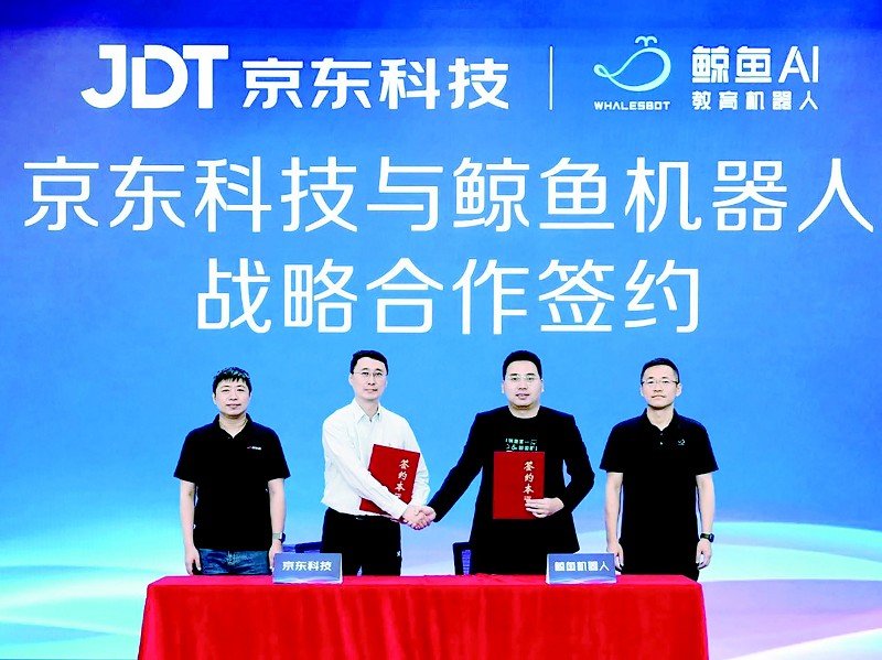 本报讯 近日,京东科技与上海鲸鱼机器人科技有限公司(以下简称“鲸鱼机器人”)签署战略合作协议,双方将围绕产品及技术合作、科技助力营销增长、产业模式探索等维度,共同推动“AI+教育机器人”产业迈向新高度。
