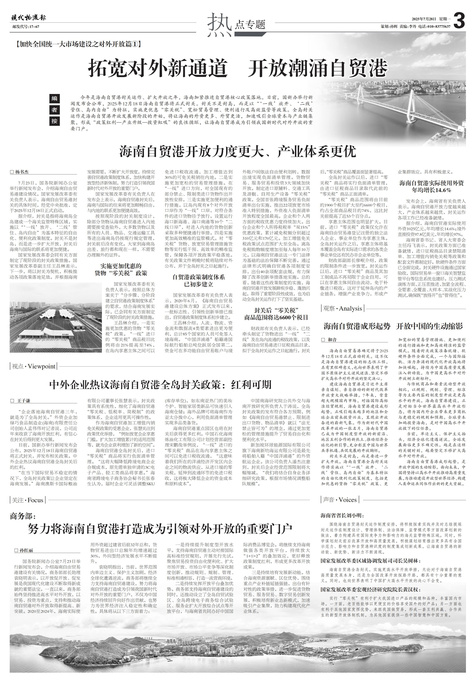 编者按 今年是海南自贸港封关运作、扩大开放之年,海南加紧推进自贸港核心政策落地。日前,国新办举行新...