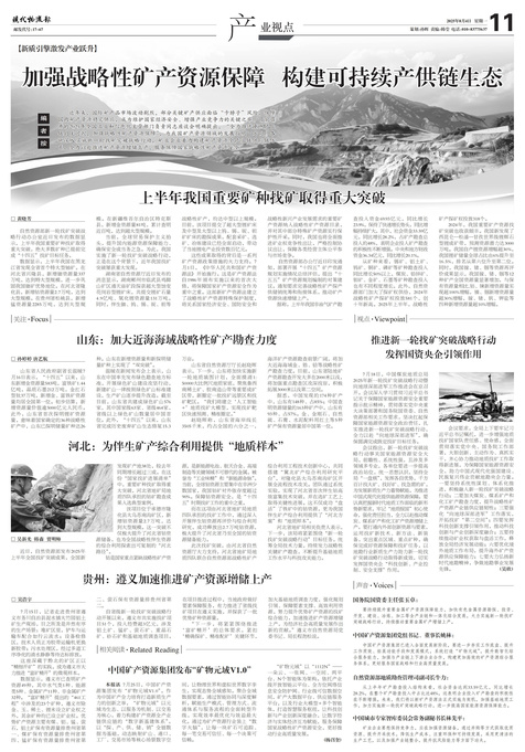 □黄晓芳 自然资源部新一轮找矿突破战略行动办公室近日发布的数据显示,上半年我国重要矿种找矿取得重大...