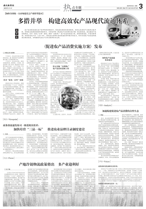 □本报记者 朱睿颖 7月29日,农业农村部召开新闻发布会,就《促进农产品消费实施方案》有关情况做介绍。...