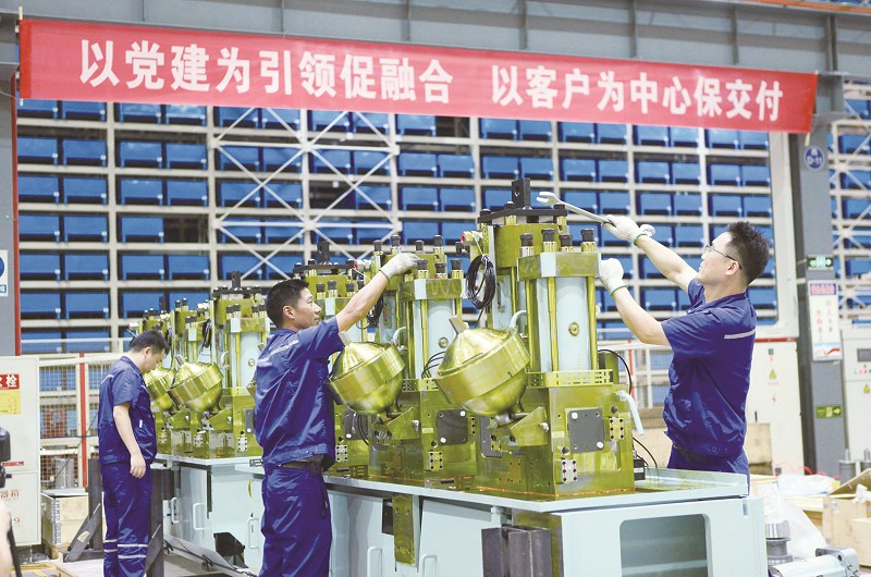 重庆红江主要研发生产LGIP低速机“心脏”关键重要件:燃料喷射和控制总成。中船集团首席技师、国家级技能大师工作室带头人、一号车间加工中心特级技师傅国涛说:“那段时间是全体总动员,技术中心、车间一线、生产配套、设备保障部等各部门通力协作,从技术消化、施工图纸设计、技术规范制定、工艺方案论证、工艺编制、特殊刀具采购等,各部门员工做了大量工作。”