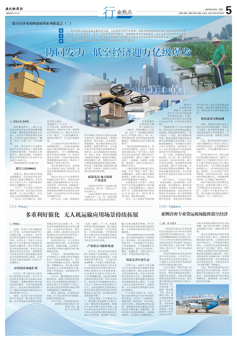 □ 李保金 近期,多条无人机运输航线试飞开通,应用场景加速扩围,在城际运输、山区配送、生鲜及医疗物资...
