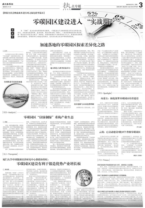 □ 林水静 随着我国“双碳”工作的不断推进,开展零碳园区建设已成为实现碳达峰目标、推进绿色转型的重要抓...