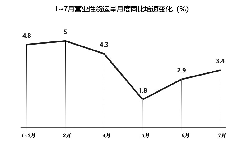 据最新数据,当前货运量保持平稳增长,7月份完成49.7亿吨营业性货运量。其中,民航货运量增长最多,达到了15.3%。1~7月,累计完成营业性货运量330亿吨,同比增长3.8%。