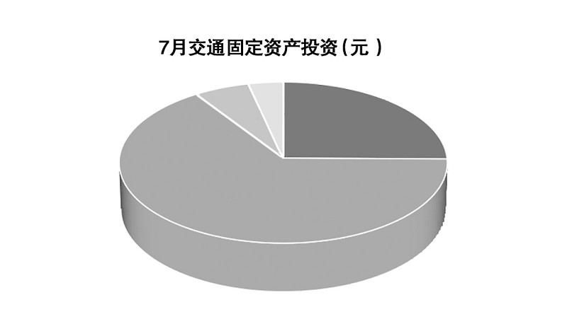 交通建设投资仍处于较高水平,7月份完成交通固定资产投资3061亿元,其中铁路、公路、水路和民航分别完成771亿元、2005亿元、173亿元和112亿元。前7个月累计完成投资1.95万亿元,持续发挥基础设施建设对经济发展的支撑作用。