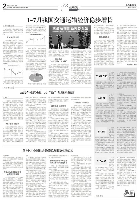 □ 实习记者 卫小波 8月27日,交通运输部举行8月例行新闻发布会,介绍1~7月交通运输经济运行情况,并回答...