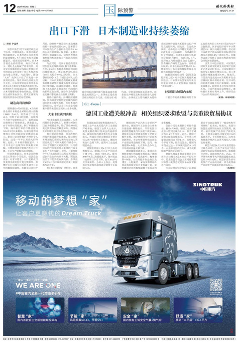■ 德国工业遭关税冲击 相关组织要求欧盟与美重谈贸易协议