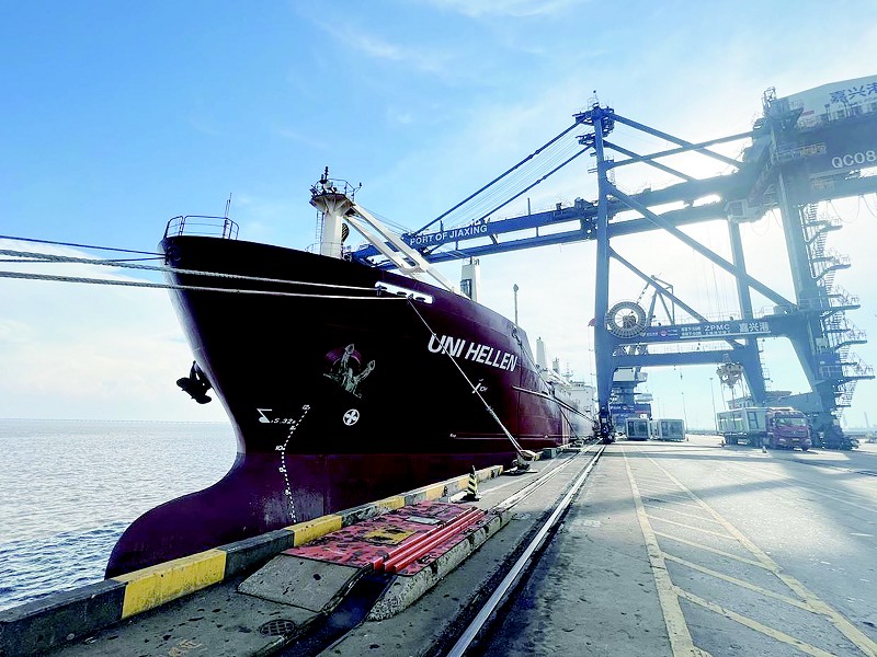 本报讯9月5日,中国香港籍散货船“长盛”轮在浙江嘉兴港乍浦港区D8泊位完成装货作业,离港直航驶往坦桑尼亚桑给巴尔港和莫桑比克贝拉港,标志着嘉兴至非洲的“一带一路”新航线正式开通,实现了嘉兴港中非直航航线“零的突破”。